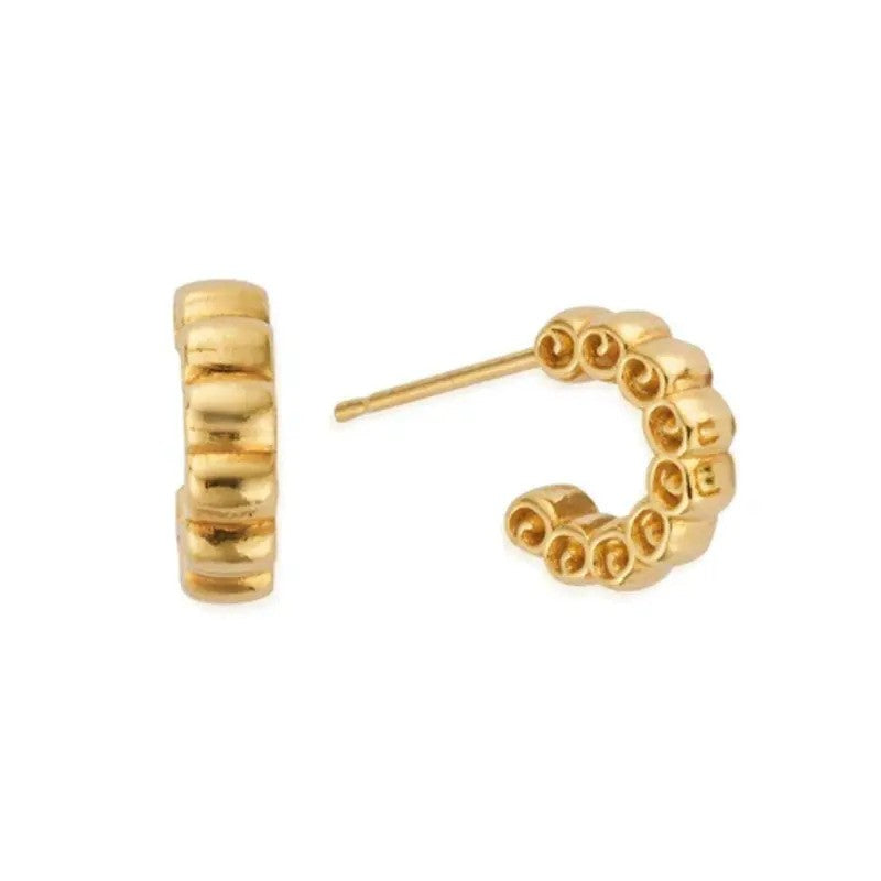 Inspired by intricate Parisian architecture, add ChloBo’s sleek huggie hoops to your ear stack and refresh your look this season! Featuring ornate swirls, these dainty gold-plated hoops will add a little texture to your everyday style.