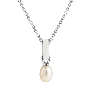 Viva brings out the fun side of pearls with enamel and sterling silver. This Viva pendant necklace by Jersey pearl features an oval pearl suspended below a white enamel ring.