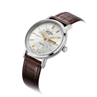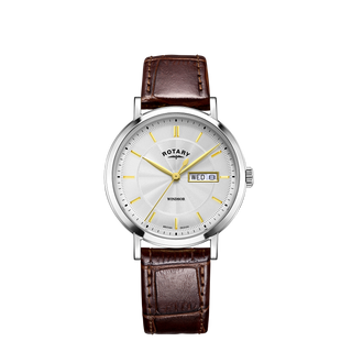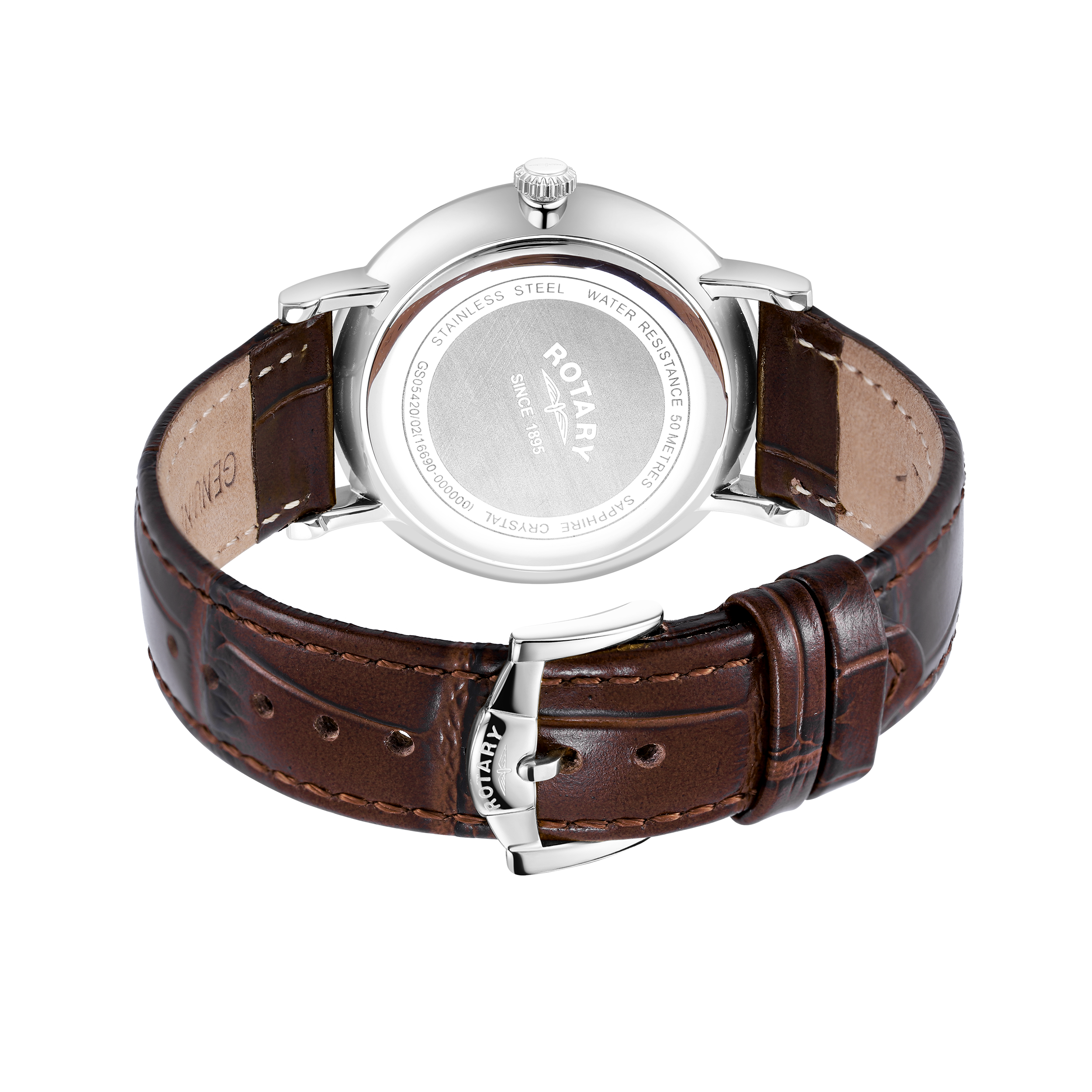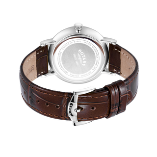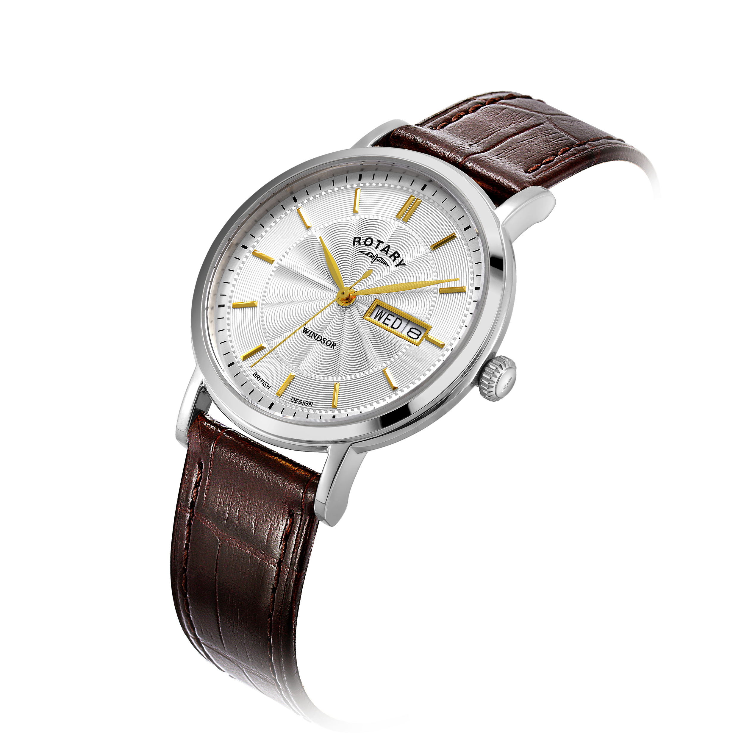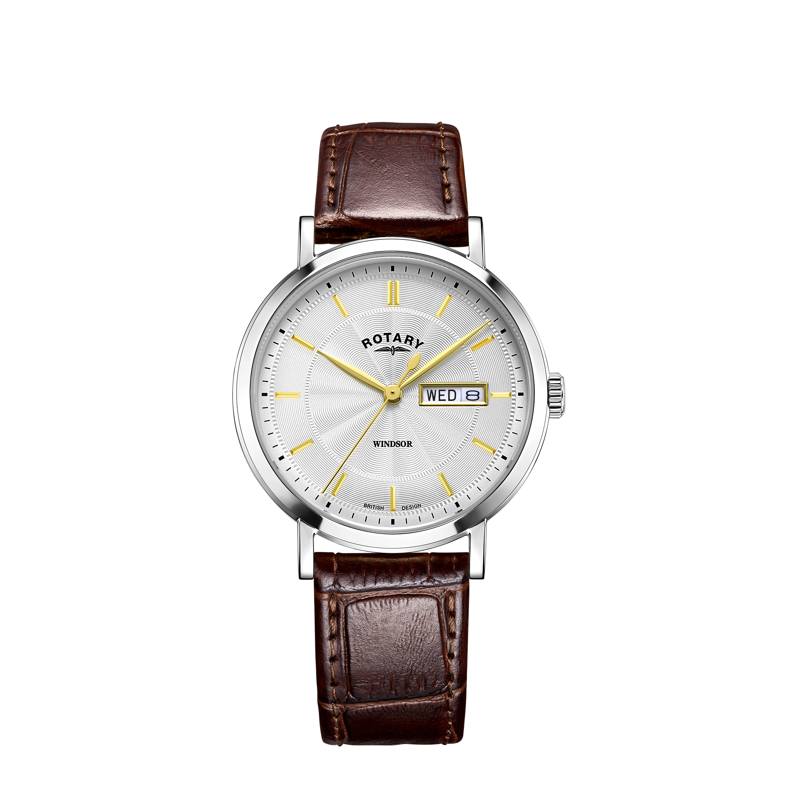 Rotary 37mm Windsor Silver Quartz Watch with a Brown Leather Strap