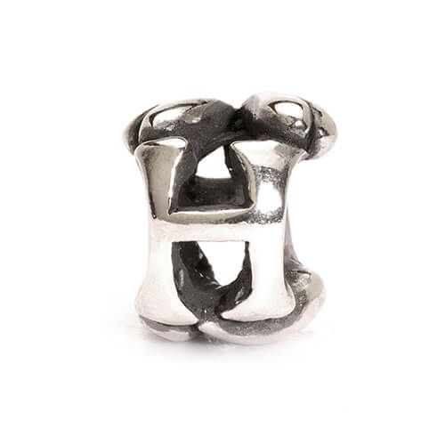 The letter H is surrounded by love hearts in this sterling silver bead from Trollbeads.