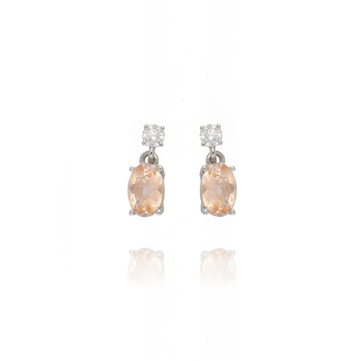 In classic 18ct white gold claw settings sit oval peachy-pink morganite gemstones and sparkling round brilliant cut diamonds. A beautiful pair of earrings that you will want to wear all the time.