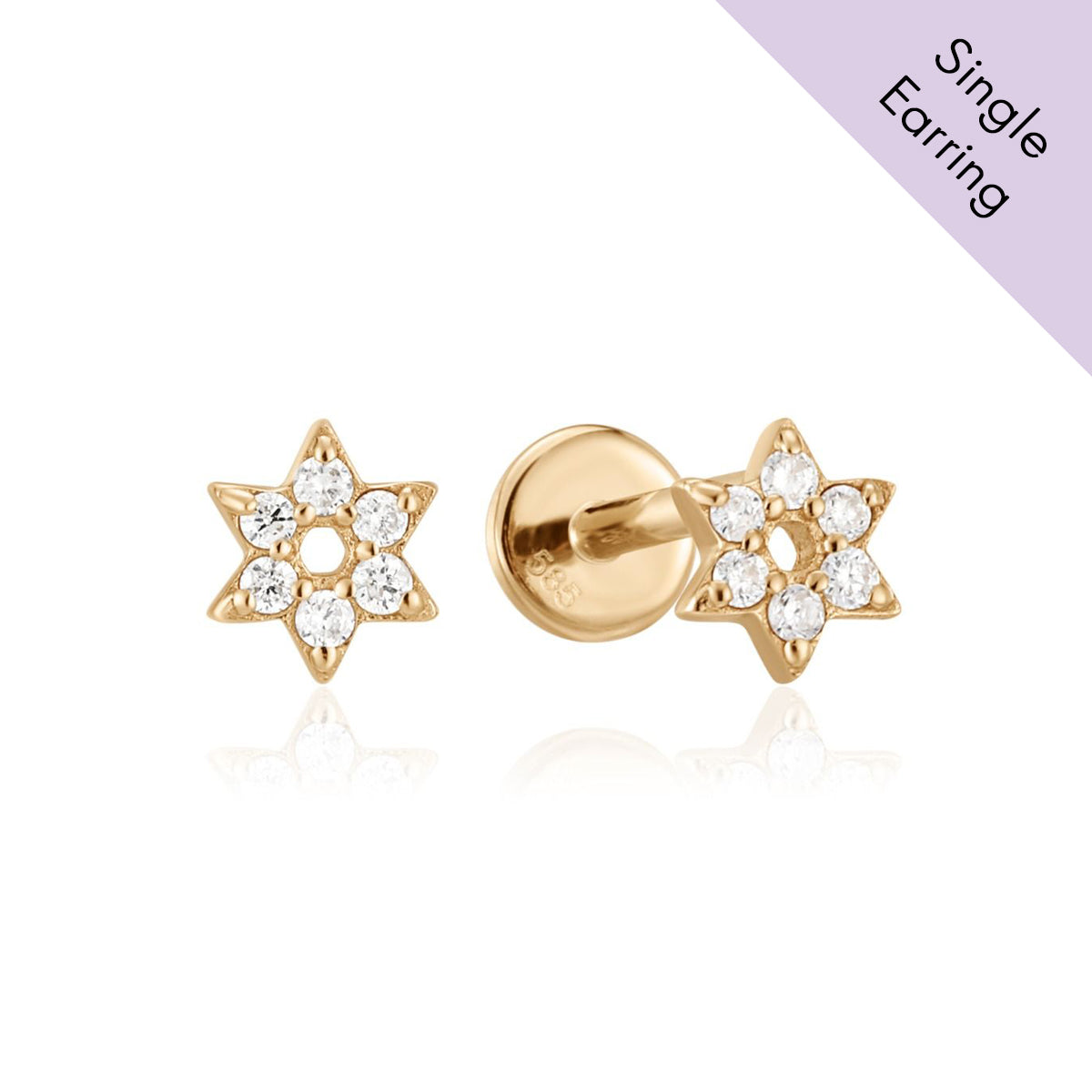 This 14ct yellow gold stud features six round brilliant cut diamonds arranged in an open star design.