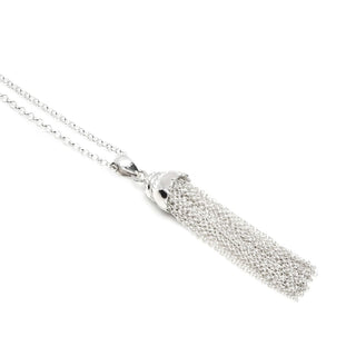 The Sterling Silver Gili Tassel Necklace features the Chain Tassel Charm suspended on a long chain.