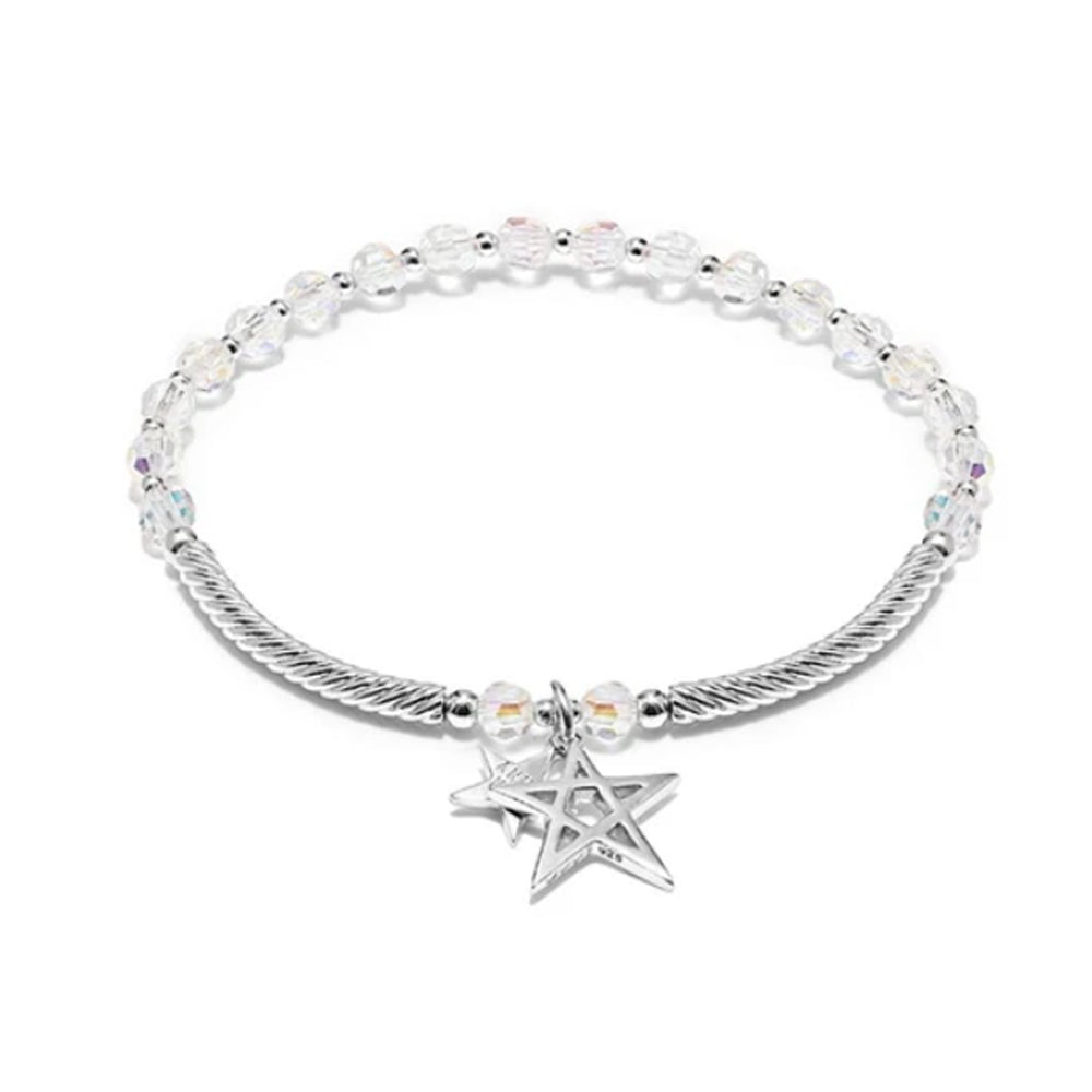 A dazzling design that would certainly make a statement. This 925 Sterling Silver bracelet has been crafted with twisted tubes and preciosa crystals and finished with a star charm.