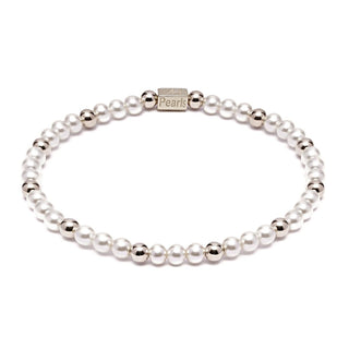 A beautiful Annie Haak Silver Pearls of Wisdom bracelet, with Preciosa Pearls threaded onto high quality elastic, between Sterling Silver beads.