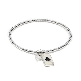 Annie Haak's popular Santeenie bracelet finished with a hand engraved Black Ace Clubs charm. The bracelet has been handcrafted in 925 Sterling Silver and Black Italian Enamel.
