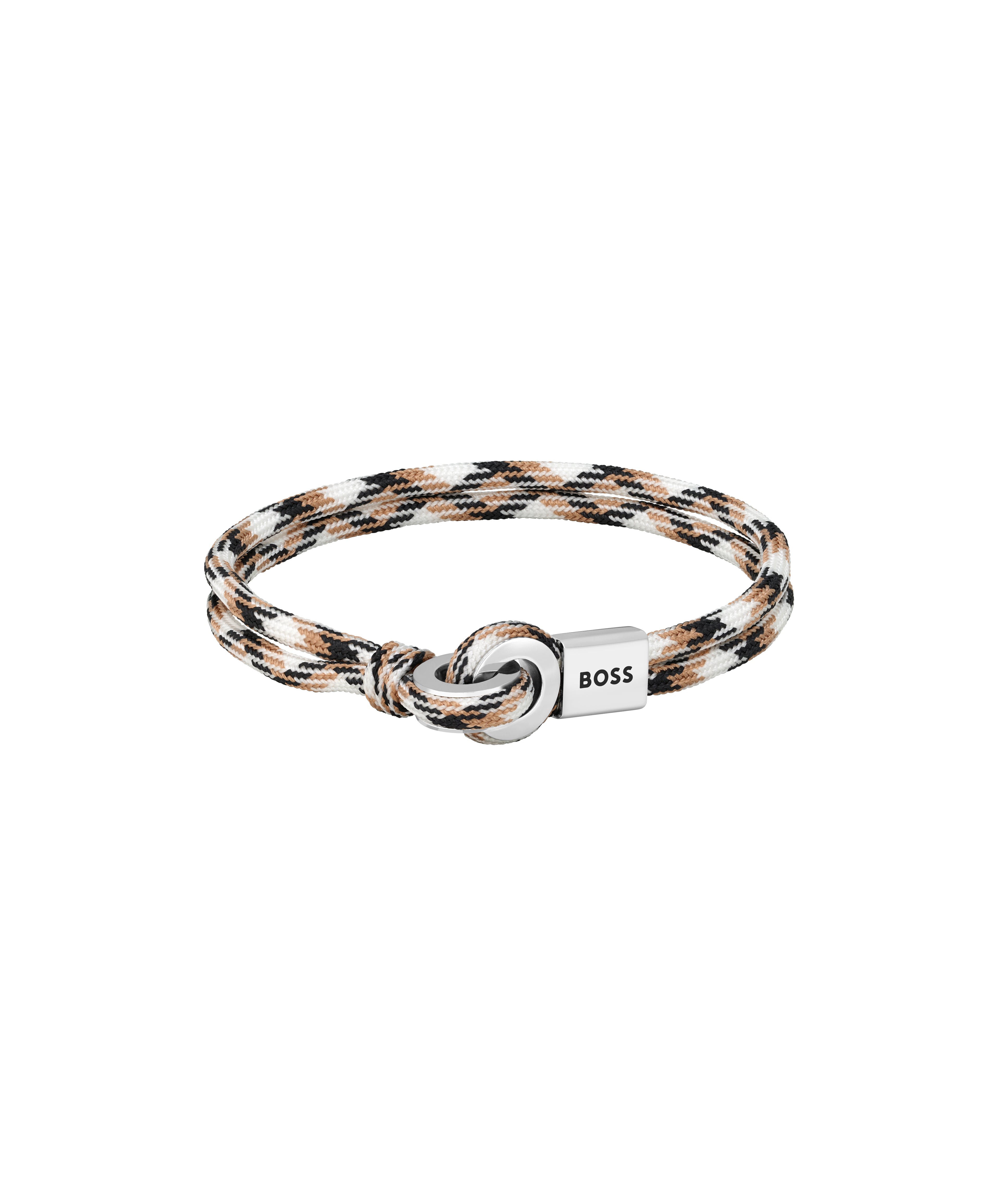 This multi coloured nylon BOSS bracelet from the Thad collection features interlocking stainless steel rings and an easy close magnetic clasp. This nylon bracelet is perfect for everyday wear and is a great way to add colour into your jewellery collection.