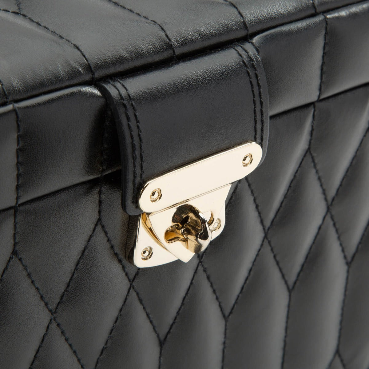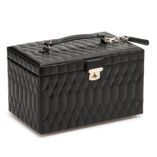 The embodiment of sophistication and style. The Caroline Large Jewellery Case by Wolf, a timeless classic with elegant soft lines of the 50’s, supple diamond quilted leather accented with gold hardware. This refined case is the perfect home for your precious jewellery and heirlooms.