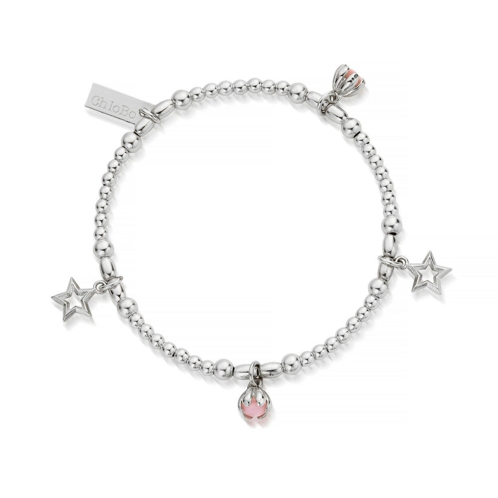 Crafted in sterling silver beads and star charms, this ultra-feminine Dreamy Night Sky bracelet by ChloBo is one for the day-dreamers. Finished with pink opal droplets, this mesmerizing bracelet brings wishes to life and is the perfect addition to your ChloBo stack.