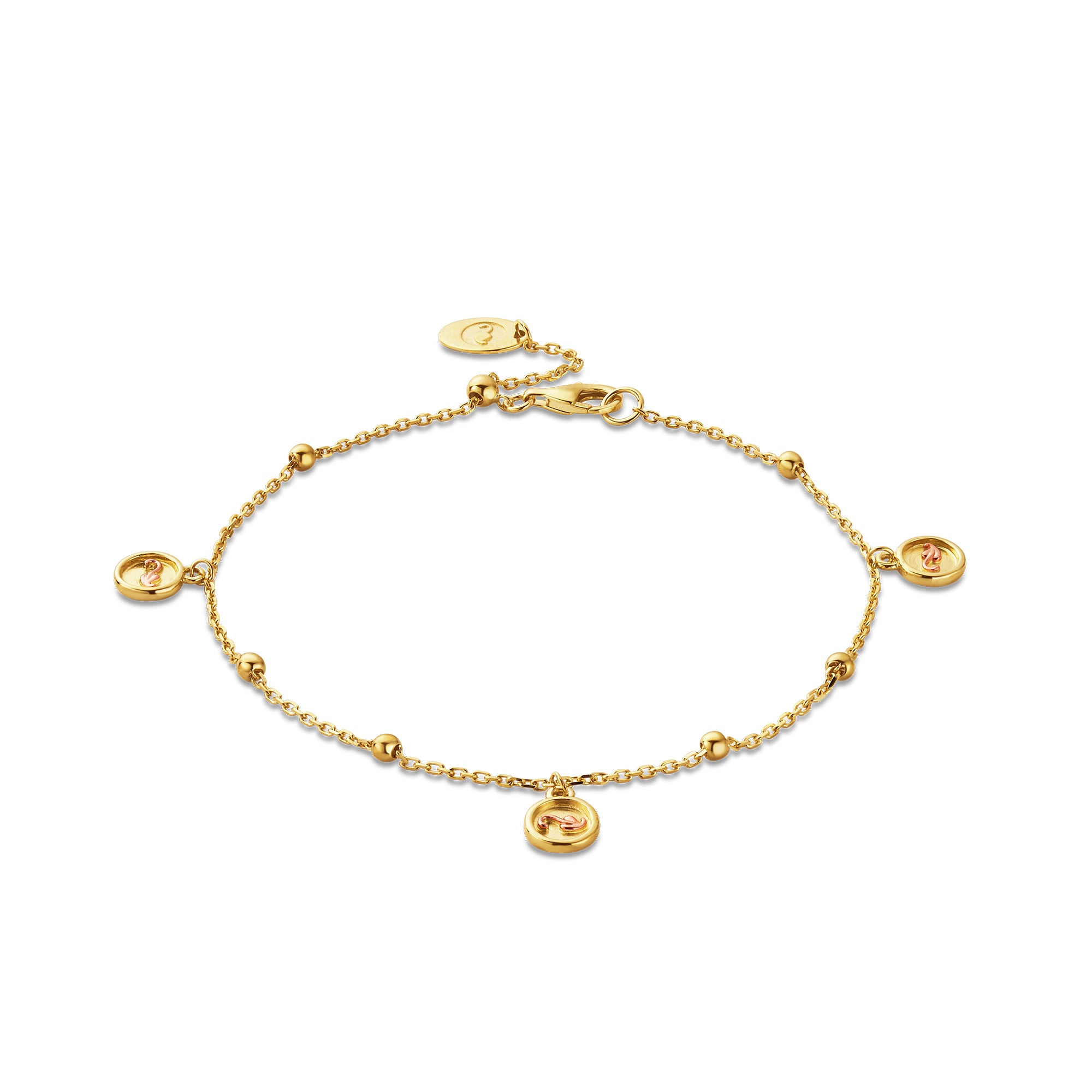 Clogau’s 9ct Yellow Gold Tree of Life Drop Insignia Bracelet features a unique design with a delicate 9ct yellow gold bead chain and Tree of Life leaf motifs in 9ct rose gold. Add elegance to any outfit with this beautiful piece.