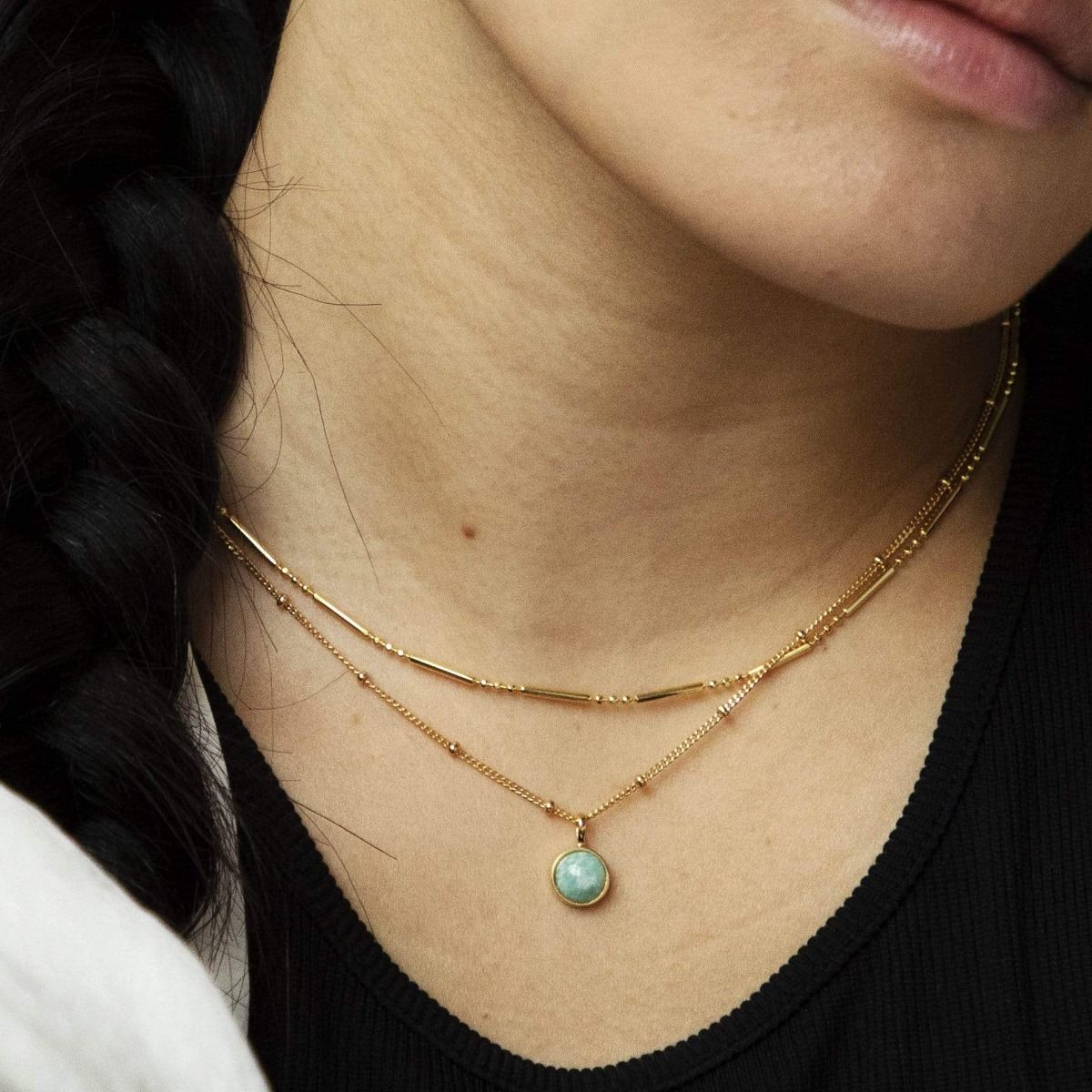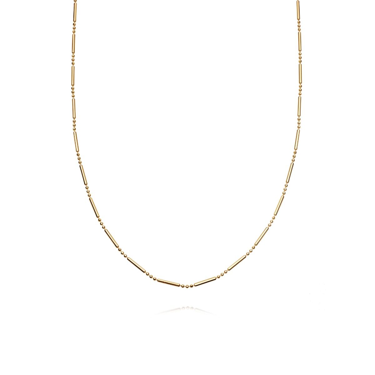 Made from 18ct gold plated sterling silver, this necklace features the bead and bar design on a lightweight chain that sits beautifully against the skin.