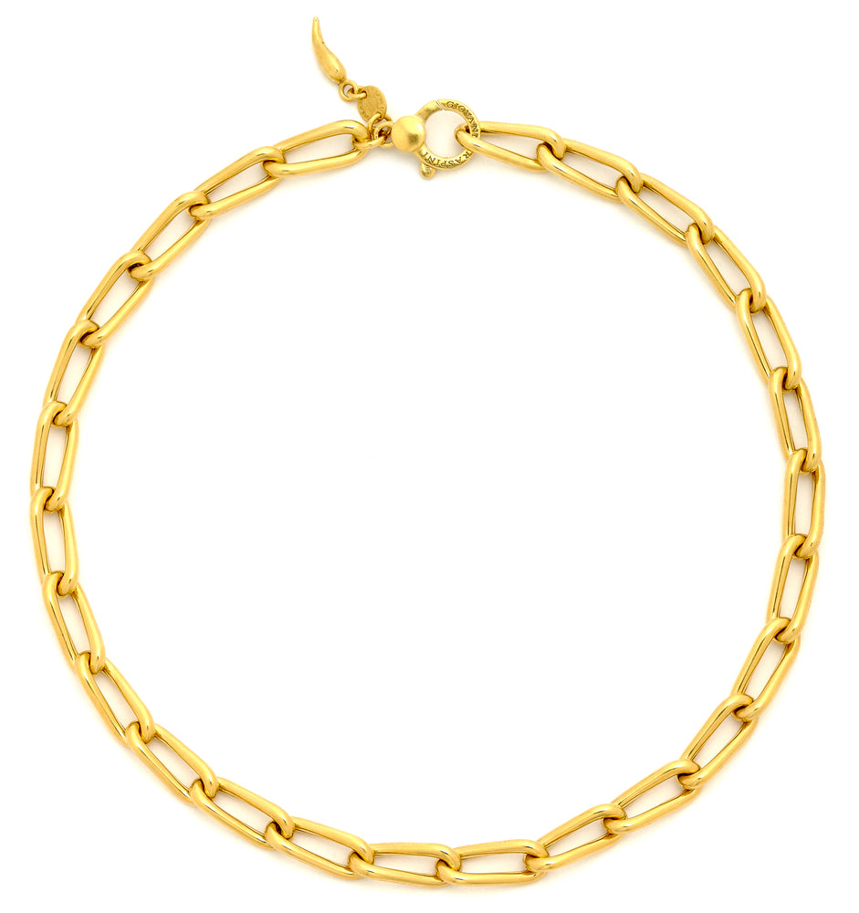 Giovanni Raspini’s Yellow Gold Plated Sterling Silver Jazz Necklace is a classic link chain that is a staple piece in any jewellery collection. This hand-crafted necklace is prefect for layering with your other yellow gold plated pieces.