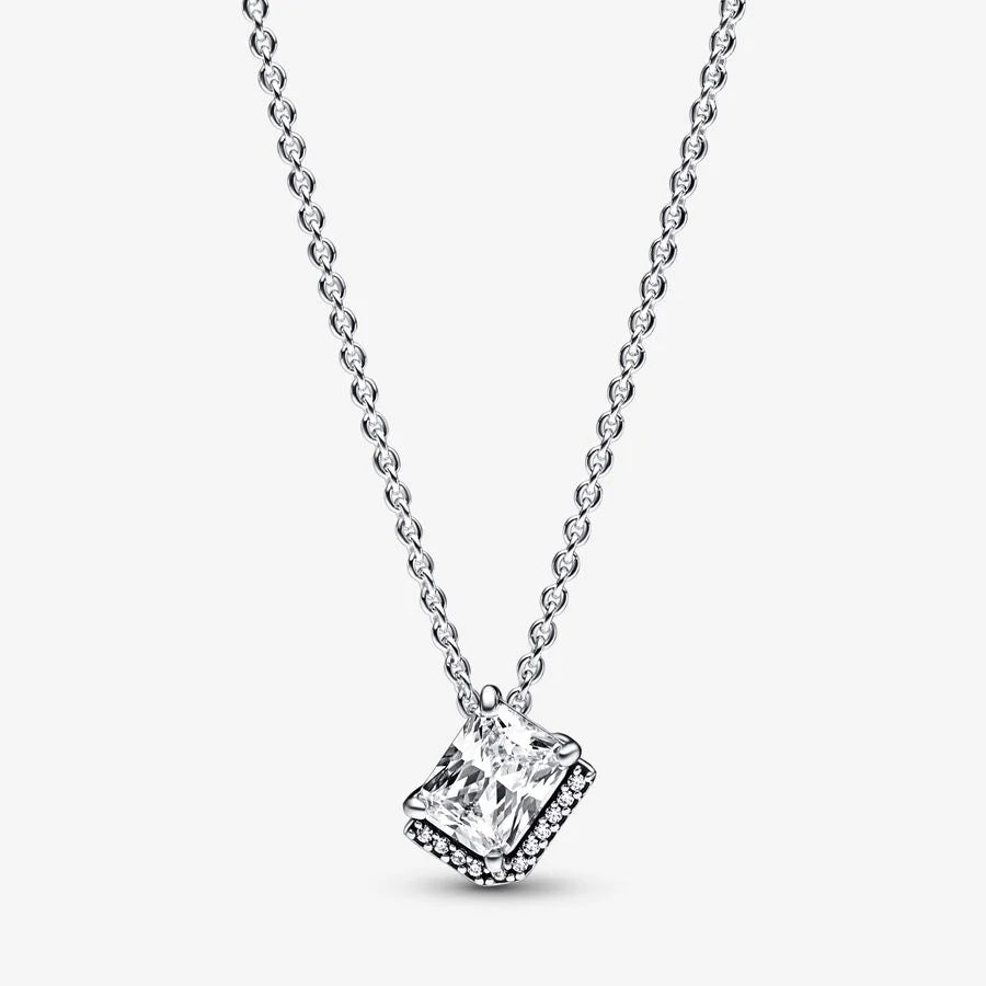 Pandora Silver Rectangular Sparkling Halo Necklace