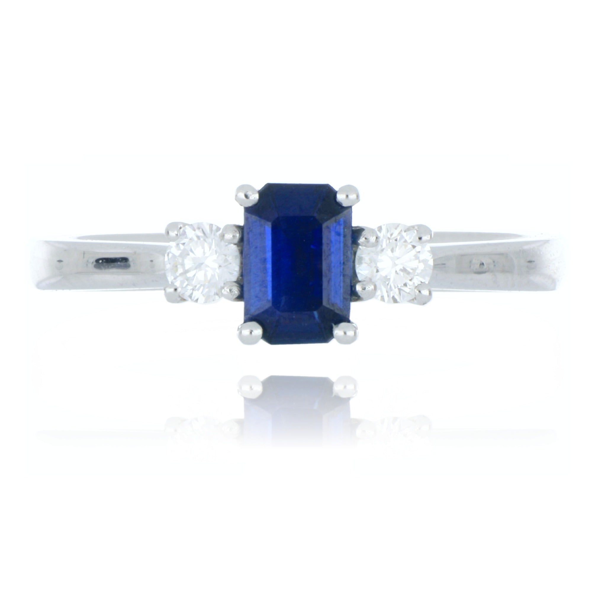 Platinum 0.58ct Sapphire and Diamond 3 Stone Ring