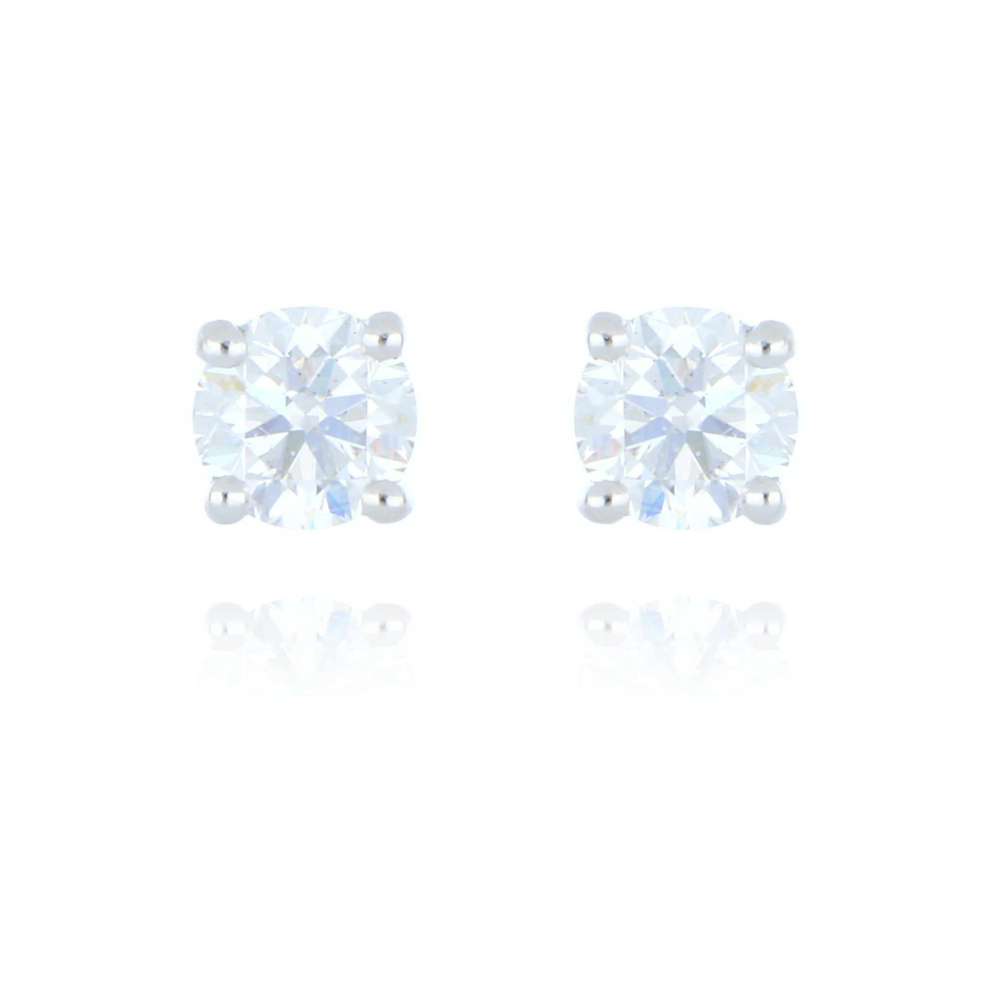 A staple for all jewellery lovers. These stunning Platinum white gold solitaire stud earrings feature a carat of sparkling round brilliant cut diamonds in 4 claw settings. You can’t go wrong with the timeless elegance of solitaire diamond stud earrings.