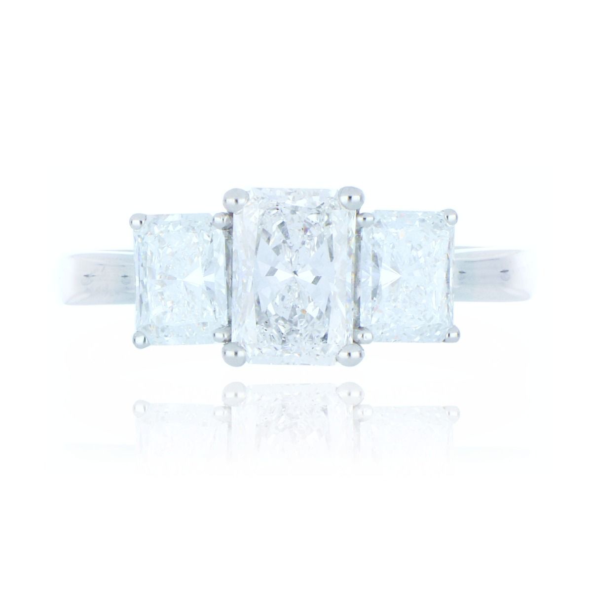 Platinum 2.02ct Radiant Cut Diamond 3 Stone Ring