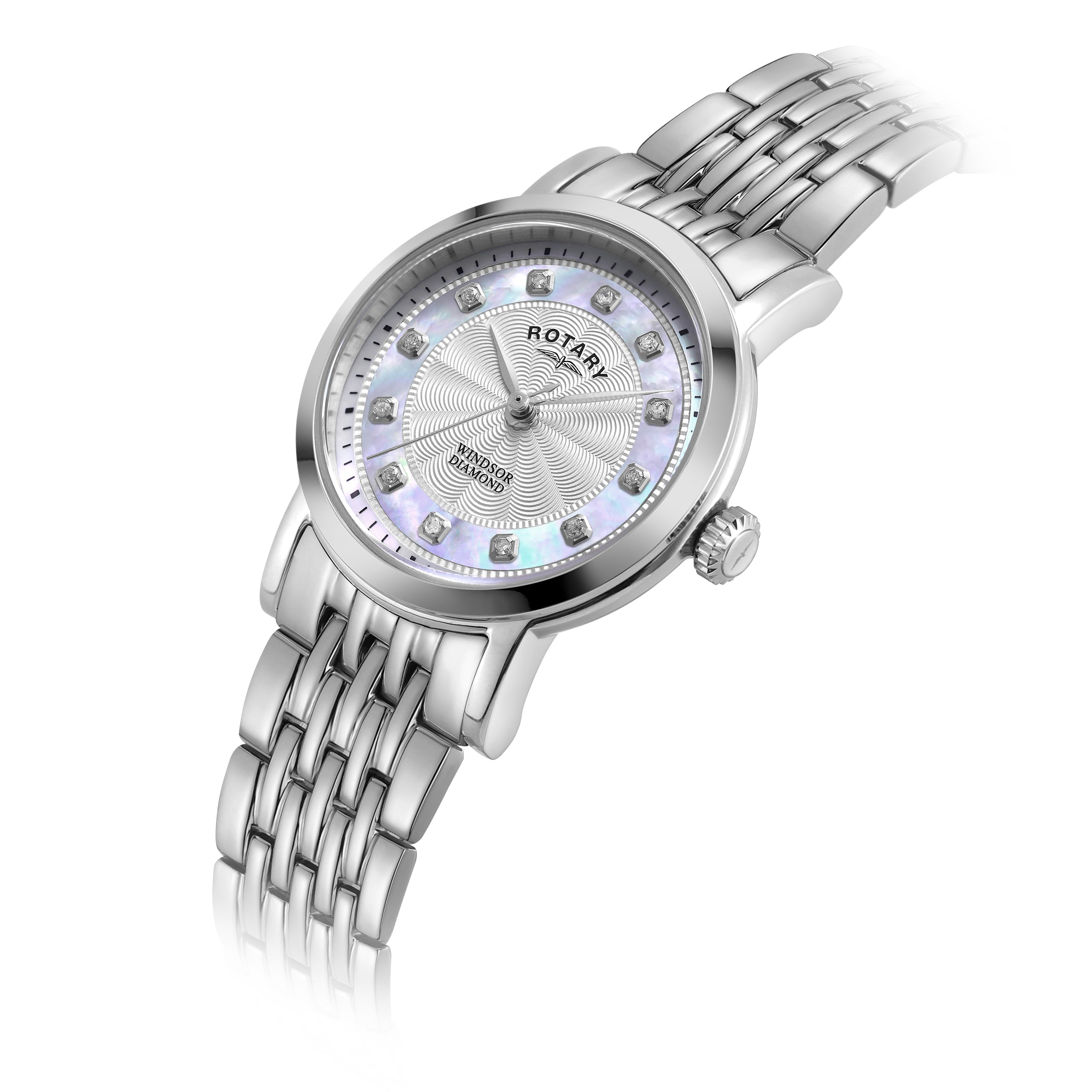 Rotary 27mm Windsor Stainless Steel Mother-of-Pearl Diamond Quartz Watch