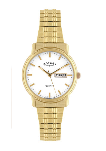 Rotary 36mm Yellow Gold Plated White Quartz Watch with a Expandable Bracelet
