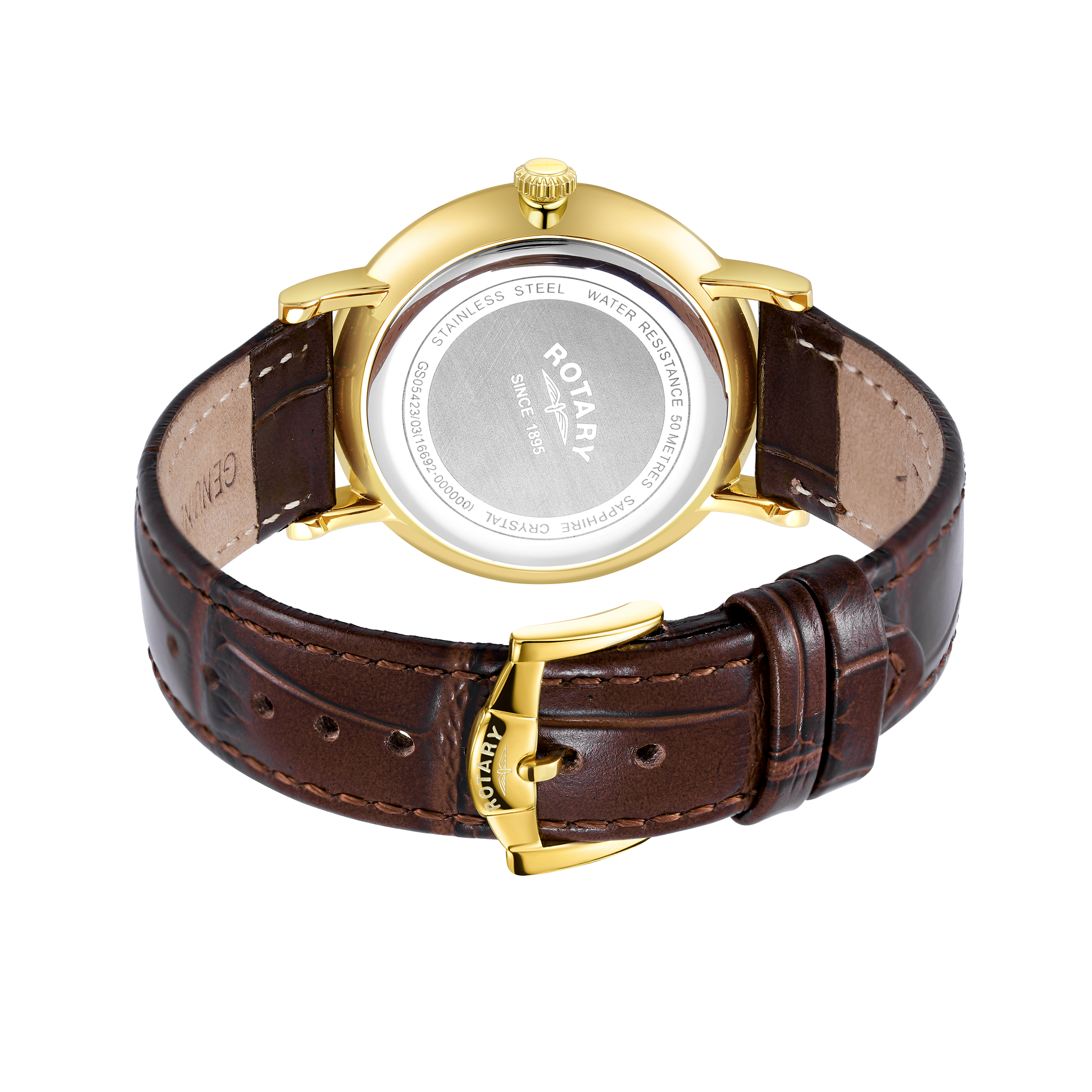 Rotary 37mm Windsor Gold Quartz Watch with a Brown Leather Strap
