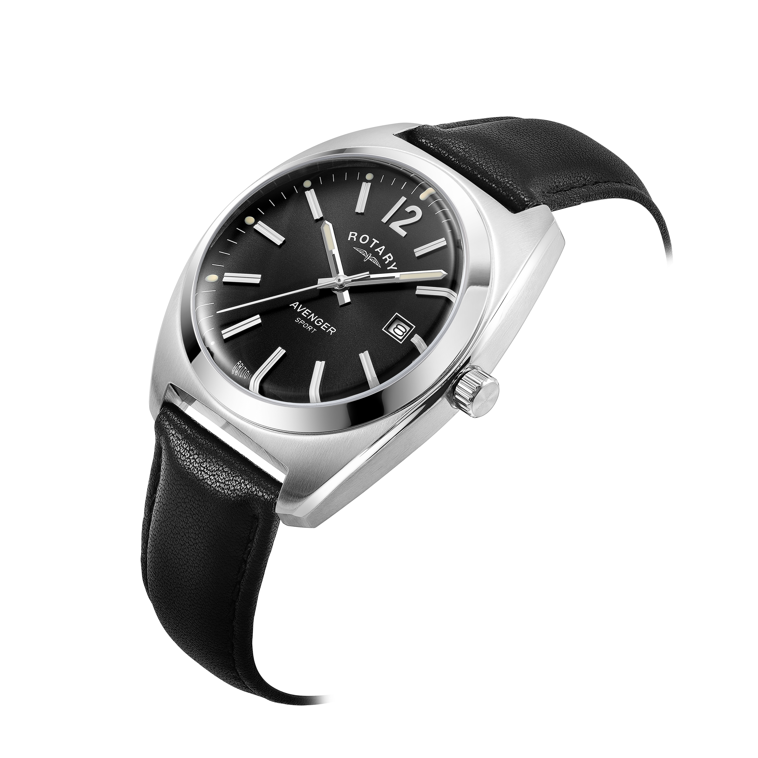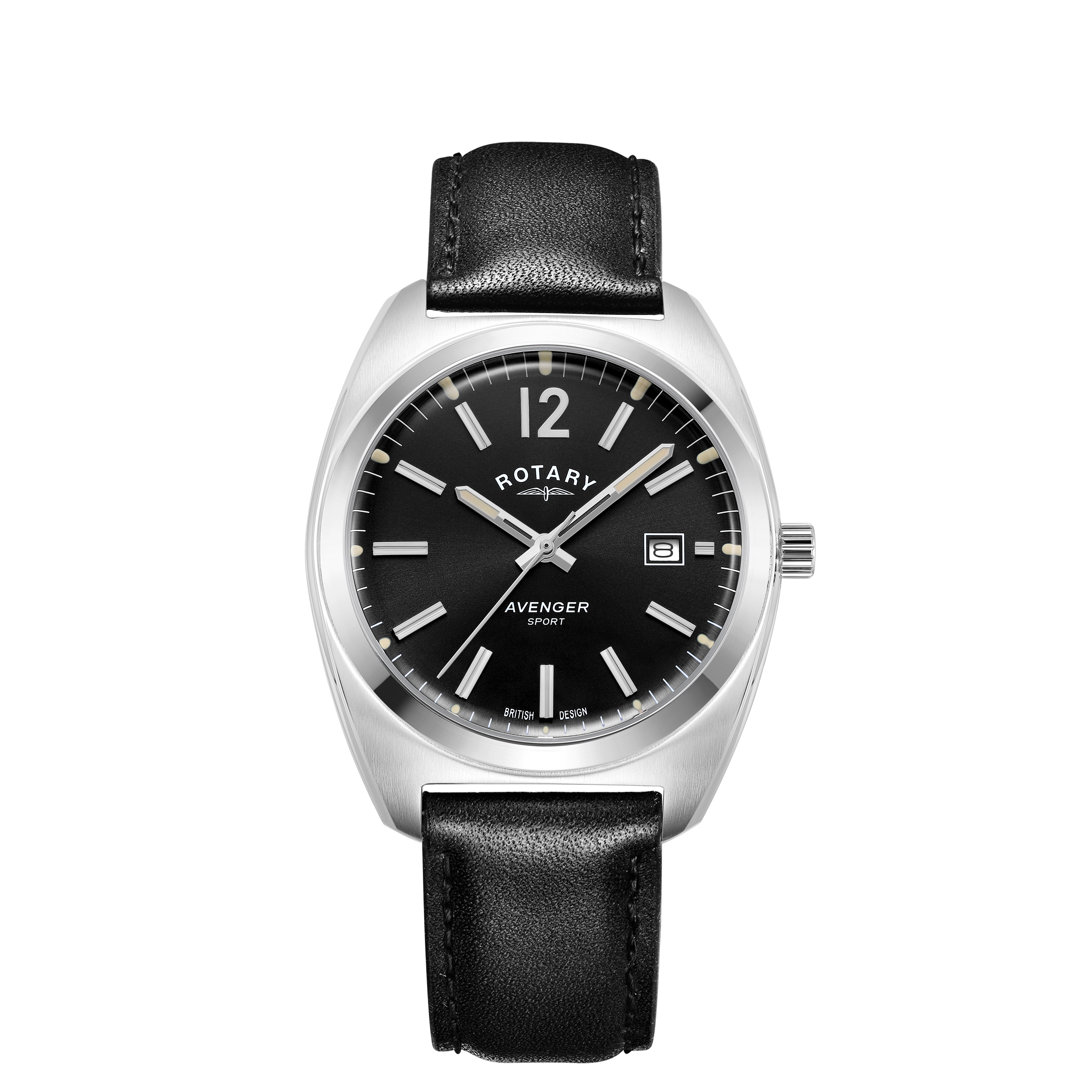 Rotary 38mm Avenger Sport 1895 Black Quartz Watch with a Black Leather Strap