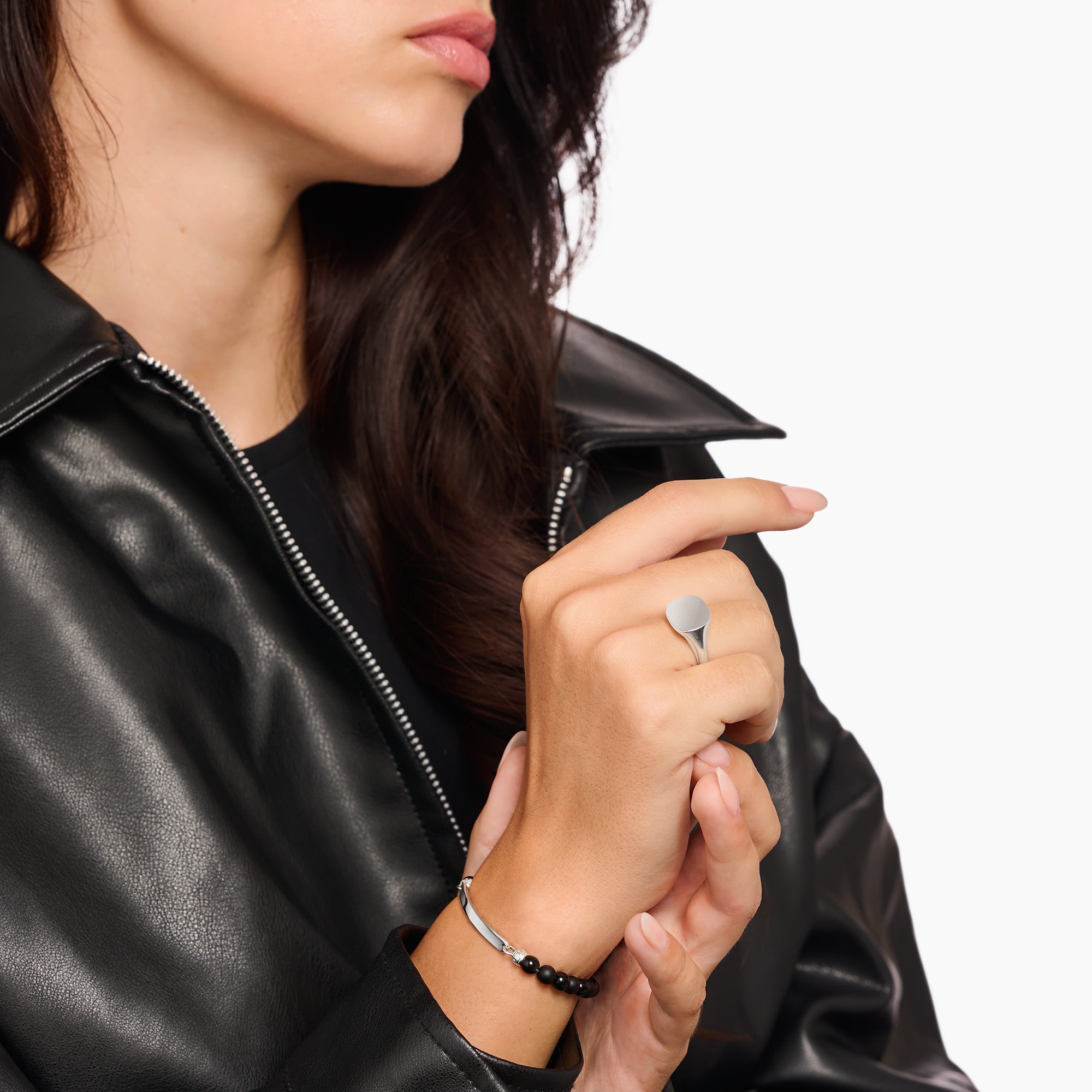 Thomas Sabo’s silver signet ring features a polished and flat ring head which is a classic and timeless piece to add to your jewellery collection. Wear alone or pair with other silver jewellery from Thomas Sabo to create the perfect look.