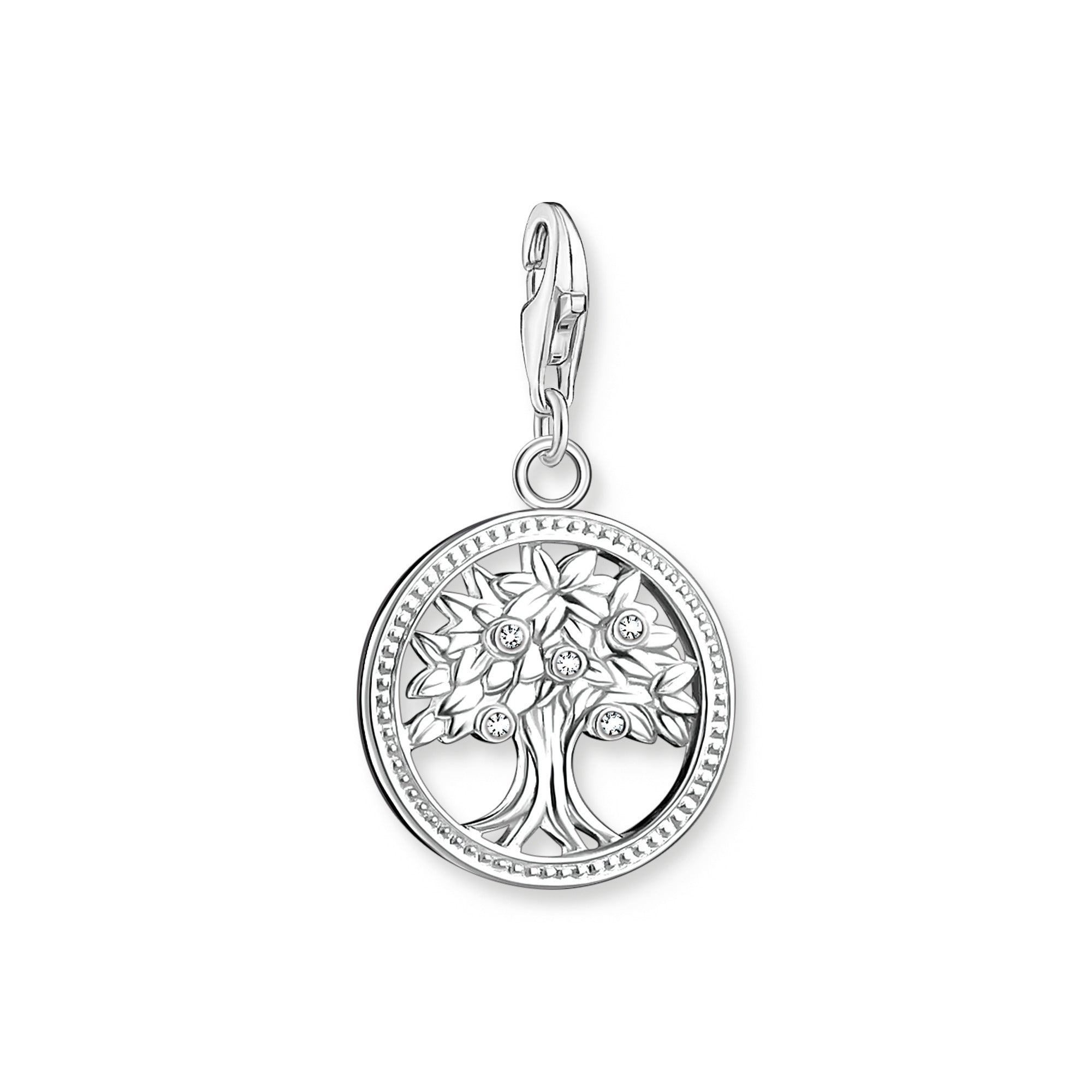 Thomas Sabo’s silver tree of life charm features white zirconia stones, adding an extra sparkle to your outfit. This charm can be added to a Thomas Sabo charm bracelet or necklace. Wear alone or combine with other Thomas Sabo charms to reflect your personality.