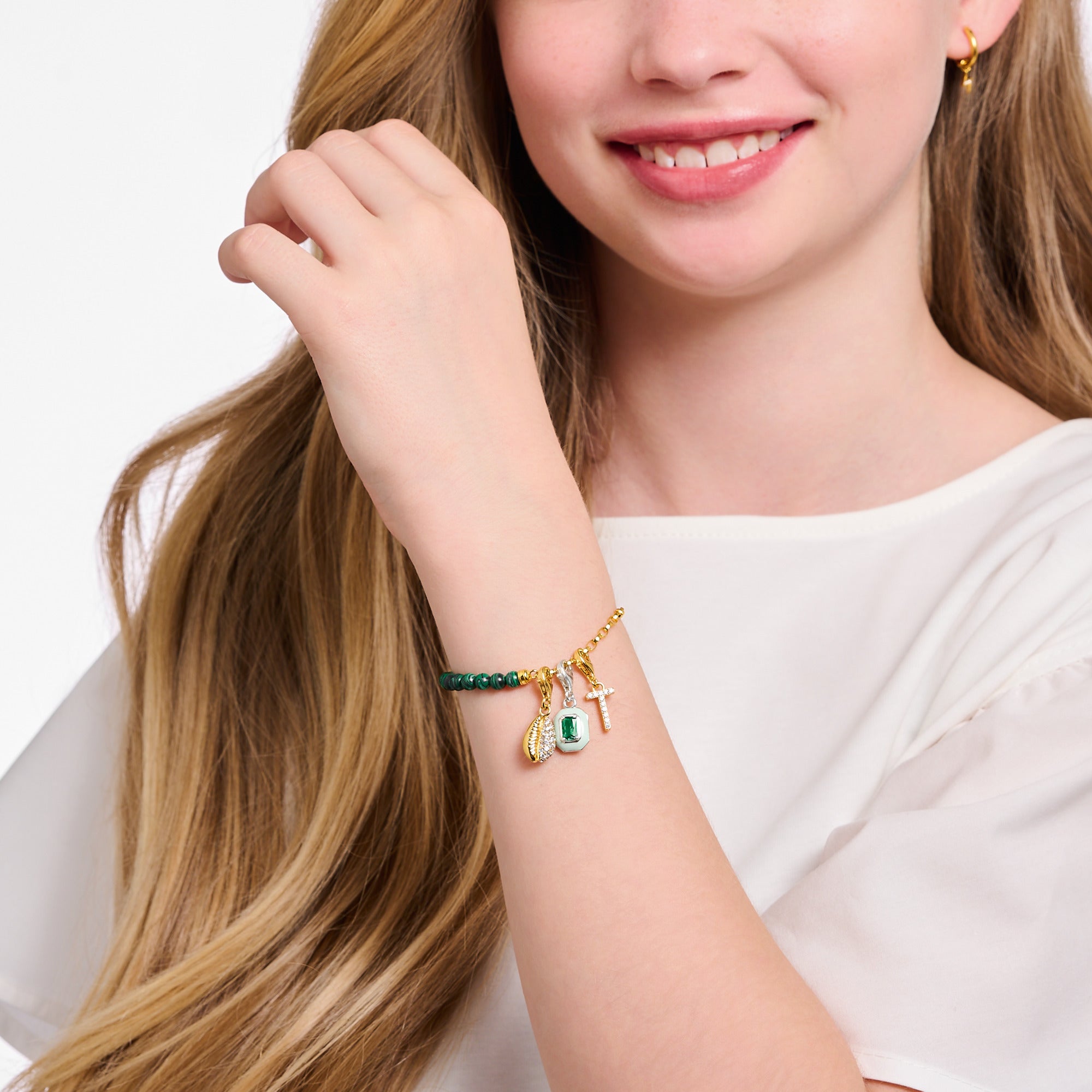 Thomas Sabo’s yellow gold plated initial ‘T’ charm features white zirconia stones which add sparkle to any look. This charm can be added to a Thomas Sabo charm bracelet or necklace. Wear alone or combine with other Thomas Sabo charms to reflect your personality.