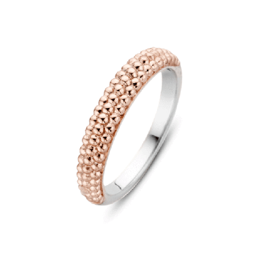 This elegant ring from Ti Sento features three rows of rose gold plated bobbles. Perfect to match with your other rose gold pieces.