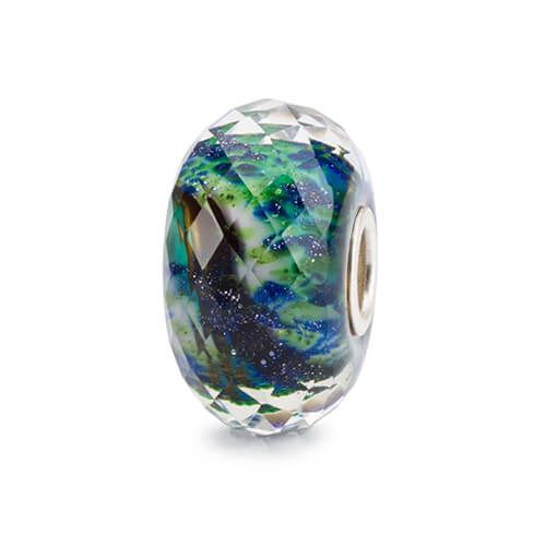 One perception can be just as right as the other. This pretty faceted glass bead by Trollbeads has swirls of blues and greens with added shimmer.