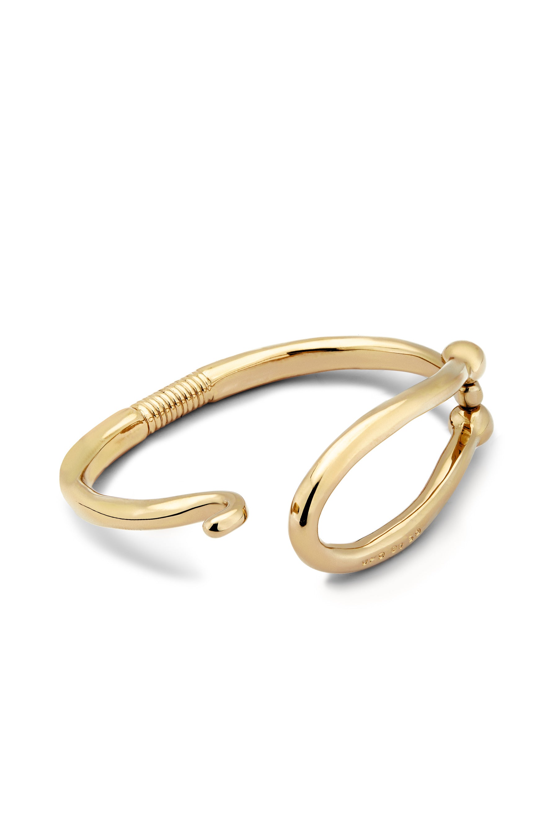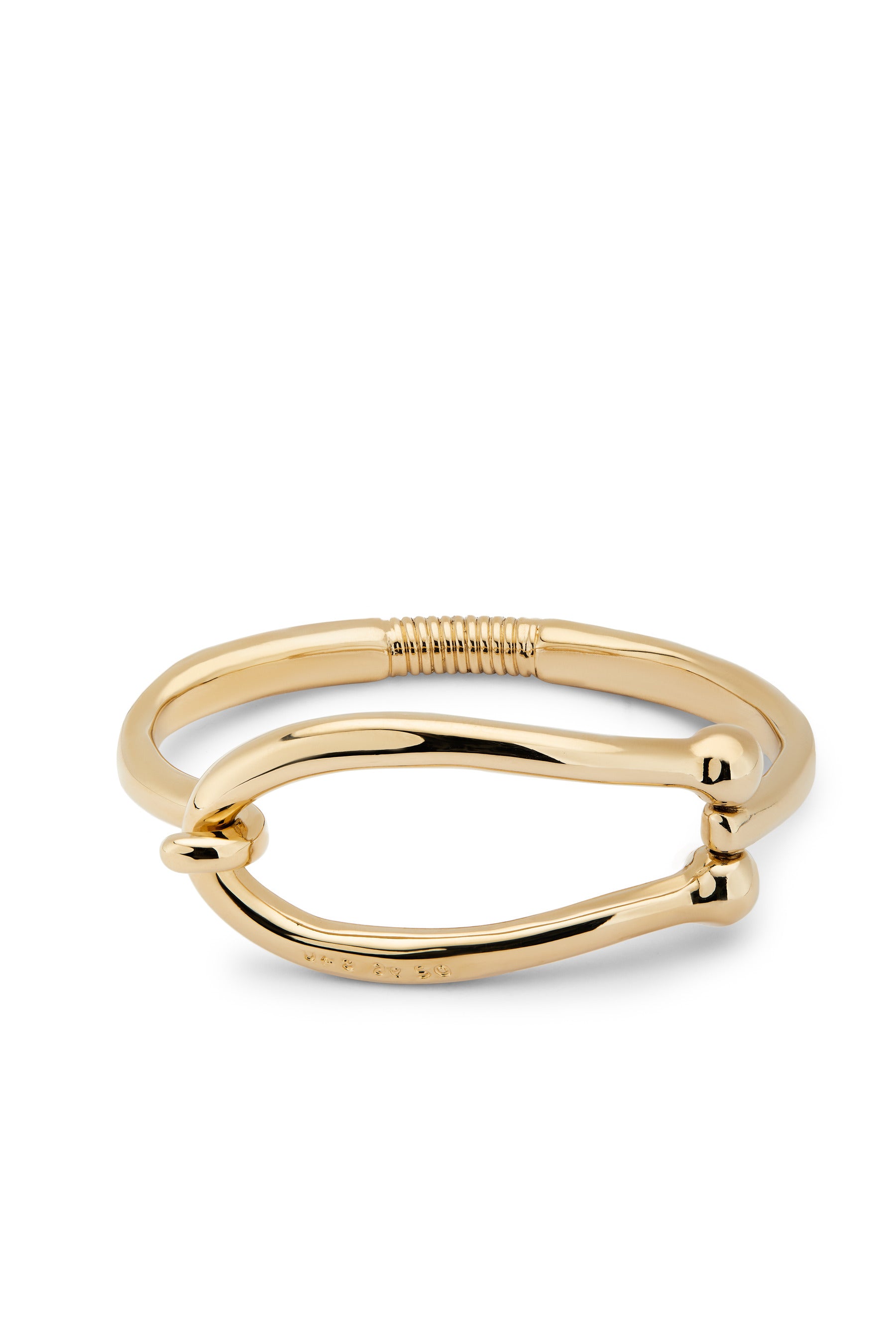 Embrace a youthful and carefree style with the UNO de 50 Yellow Gold Plated Teen Bangle. Crafted from yellow gold-plated metal alloy, this modern bracelet features a large link and inner spring for comfortable wear. Perfect for any occasion, it's a must-have bangle to add to your collection.