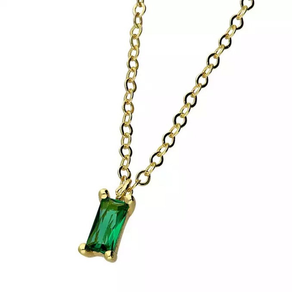 Yellow Gold Plated Green Baguette Cut CZ Necklace