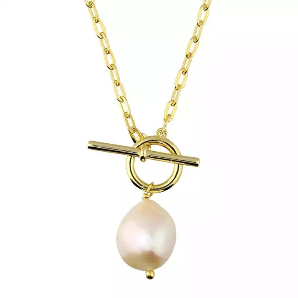 Yellow Gold Plated Pearl T-Bar Necklace
